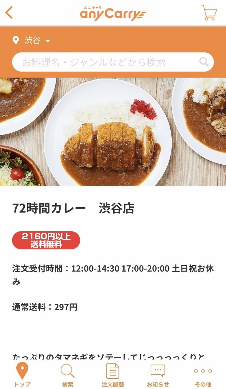 72時間カレー 渋谷店の安心、安全で美味しい熟成カレーをエニキャリが責任をもってお客様の元へお届けいたします。是非一度ご賞味ください。
