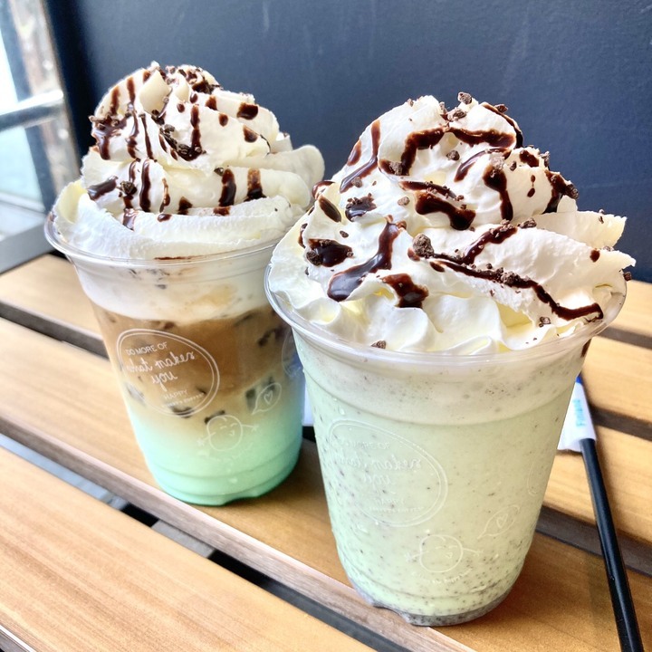 ・チョコミントシェイク:バニラジェラートにチョコミントを加えた、ほんのりとしたミント色が爽やかなシェイク