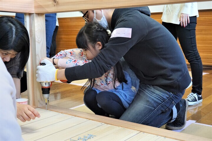 内容)みんなでカウンターデスクづくり