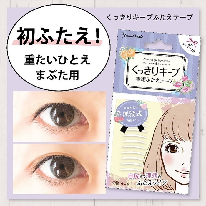 化粧品・化粧雑貨の製造販売事業の株式会社ビューティーワールドが、 新商品「くっきりキープふたえテープ(両面)」を発売致します。 素肌タッチのふたえテープに埋没式が新登場! 極細形状・こだわりカットで目立たない! ※簡単&キレイに貼れる、専用スティック付き。 【くっきりキープふたえテープ(両面) 紹介ページ】 http://beautyworld.jp/bnrproducts/7003