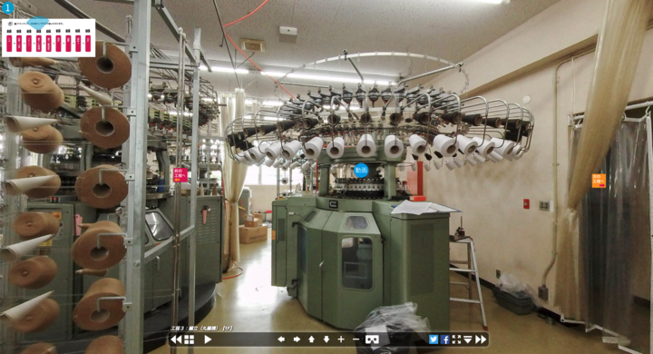 「VR動画ver.」は、2分40秒の中で女子生徒が「ニット製品ができるまで」をナビゲート。「VR静止画ver.」には、生徒の皆さんが編集・ナレーションを担当した動画が埋め込まれており、工程の詳細を見ることも可能です。また、生徒の皆さんのアイデアで動画には五泉高校のゆるキャラ「ごっちゃん」も登場し、見学ムードを盛り上げてくれます。どちらのコンテンツも工場を360度ぐるりと見渡すことができ、本当に見学をしているような気分が味わえます。