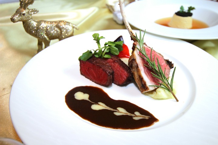 ・特選牛フィレ肉と子羊のデュエット 2色のソースで