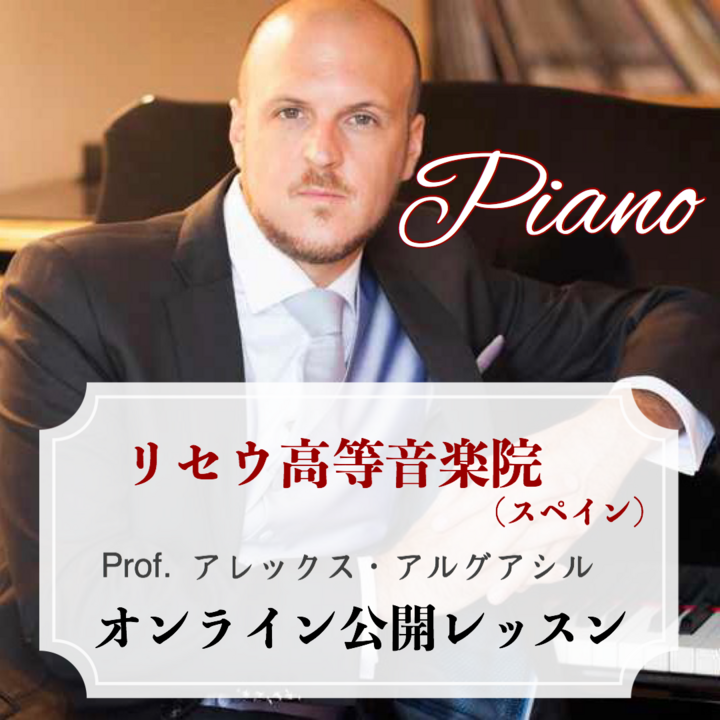 東京・御茶ノ水のアンドビジョンホールまたはお客様のご自宅等で最大3名限定で、アレックス・アルグアシル教授の直接指導を受けられます(オンライン聴講もあり)。ヨーロッパやアメリカを中心にピアニストとして活躍している先生のレッスンは、音楽留学の足がかりを掴むことができます。留学先を決定する上で、先生のレッスンは世界のどこにチャンスを求めるかを含めて一つの目安になることでしょう。アレックス・アルグアシル先生は喜んで日本のみなさんと様々な音楽を共有したいと願っています。年齢やレベルを問わず、どなたでも受講可能です。「音楽留学を考えている方」「コンクール準備」「視野を広げたい方」「純粋に音楽が好きな方」「現在のレベルチェック」などには最適でしょう!ぜひこの機会をお見逃しないように!
