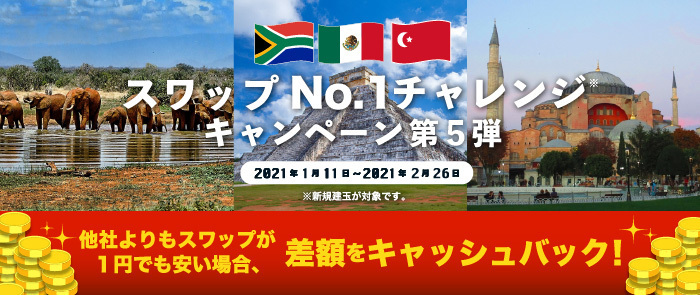 人気の高金利通貨で「スワップNo.1チャレンジキャンペーン第5弾」を実施!
