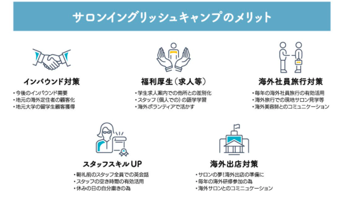 今後さらに世界にはばたく美容師さんを増やしていきたいという想いから、サロンイングリッシュキャンプというオンライン英会話サービスが誕生しました。