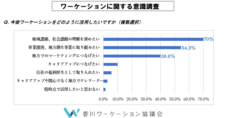 香川県における産学官金連携によるワーケーション促進を通じ、地域経済の活性化、人びとの働き方と余暇の過ごし方「ワークライフバランス」の実現を目指す、香川ワーケーション協議会(代表幹事 近江淳 https://kagawa-workation.org/)は、本年1月13日開催のキックオフ会にてワーケーションに関する意識調査を実施しました。