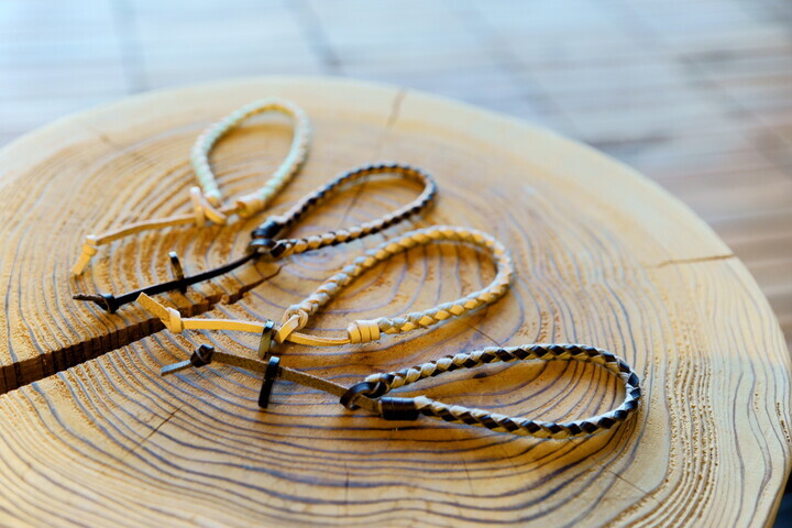 ■素材:姫革(革ひも)、オーガニックコットンリボン、めがね端材(セルロースアセテート)