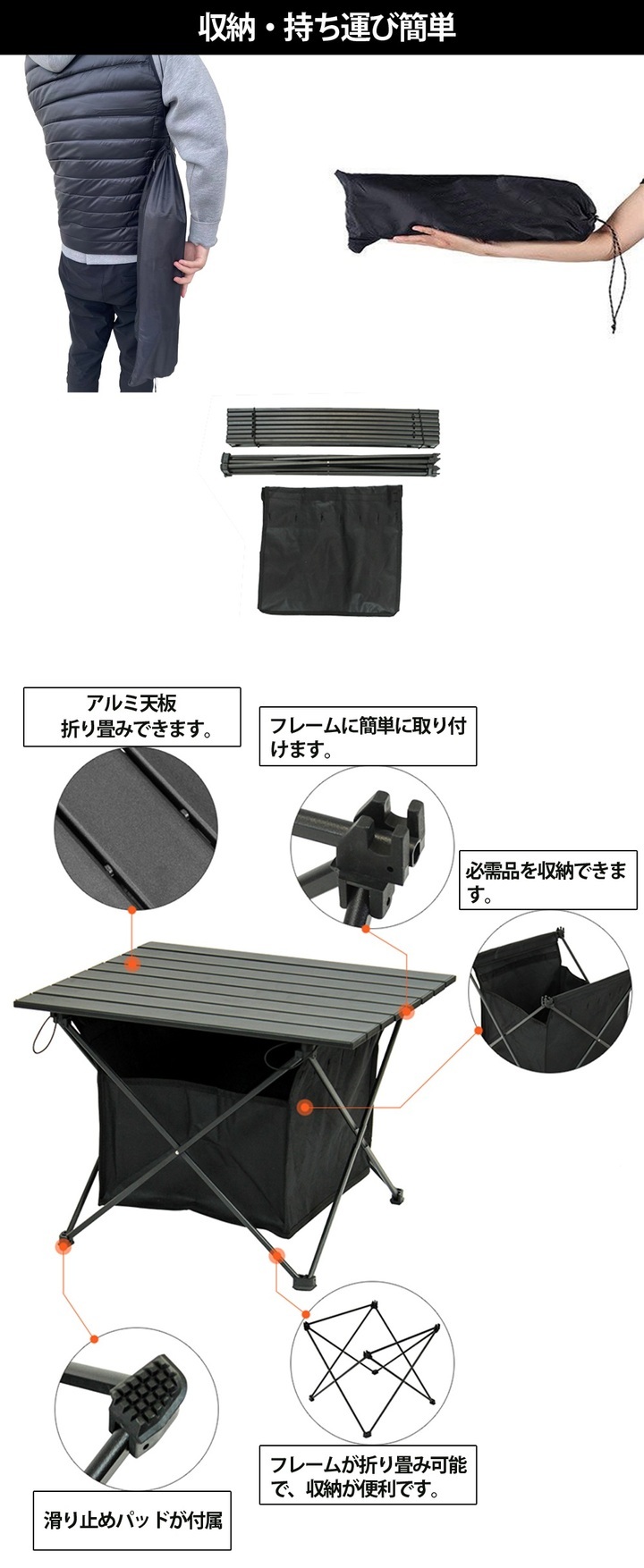 持ち運び、収納が簡単なアウトドア折り畳みサイドテーブル