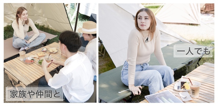 新型『キャンプコット』Naturaldropは、ホテルのベッドの様な寝心地を実現したハイ/ロー2WAY仕様であらゆるシーンで大活躍します。こんなに気軽に使えるコットなので、「ぱっと準備して、出掛けよう!」そう思えることがきっと増えます。肩肘張らず、自然体で、好きな場所へ。一人であっても、家族や仲間と一緒であっても、もっと楽しい時間が過ごせます。