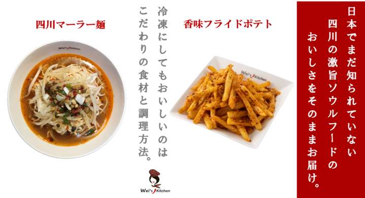 日本で人気のある中華料理トップ10のうち、麻婆豆腐、青椒肉絲、回鍋肉、エビチリ、油淋鶏の5つはすべて四川料理。四川料理は、酸(酸味)・辣(辛味)・麻(しびれ)・苦(苦味)・甜(甘味)・香(香り)・鹹(塩味)の7つの味があり、料理の数は4000種類あると言われています。成都で生まれ育った「ウェイズキッチン」代表のウェイウェイが冷凍でも本場のおいしさそのままをご自宅で食べていただくためのこだわり食材と独自の調理法を確立しました。日本人の味覚に合うまだ知られていない美味しい四川家庭料理やローカルフードを冷凍クール便で全国のご家庭にお届けします。日本での起業プロジェクトに先立ち、キャンプファイヤーでクラウドファンディングに4月25日まで初チャレンジしておりますので応援をよろしくお願いいたします。https://camp-fire.jp/projects/view/401909