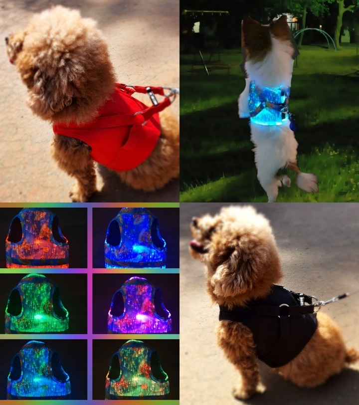 【ワンちゃんの光るハーネス 『わん!キュート』夜の散歩で注目の的に!!!】