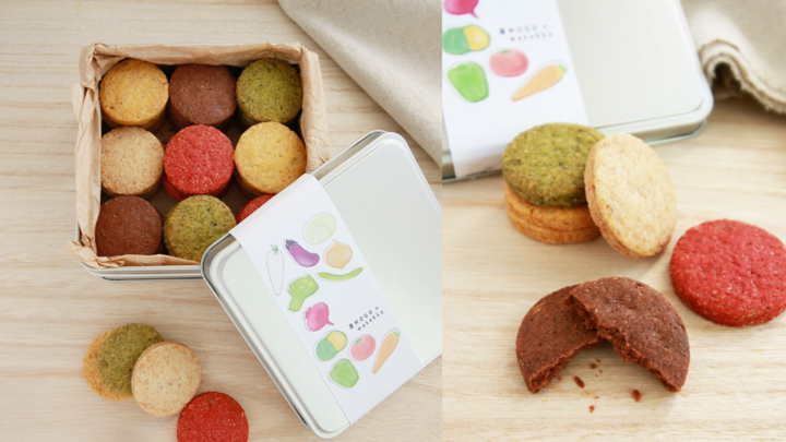 オーガニックや国産の材料などにこだわったおやつを作る「おやつ屋wakekko」と薬膳食育おやつ作り「育MOGU」が心と身体に優しい商品という想いを込めて作ったカラフルなクッキー缶。OYAMARKETの小山市産の新鮮野菜をそのまま使い、クッキーなのにまるで野菜!そんな驚きとワクワクがつまった商品を作りました。
