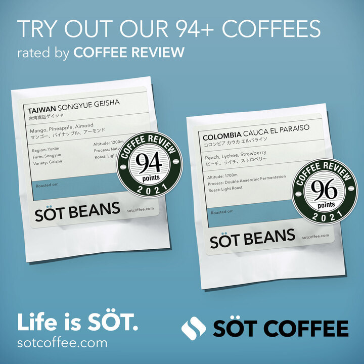 SOT COFFEE ROASTERは、この度、アメリカ老舗コーヒーレビューサイトCoffeereview.comから取り扱っている珈琲豆において高評価のスコアとなる96点と94点のレビューを獲得しました。これを記念してAR project Sakuraセッションを2021年3月26日から同年4月30日まで開催します。