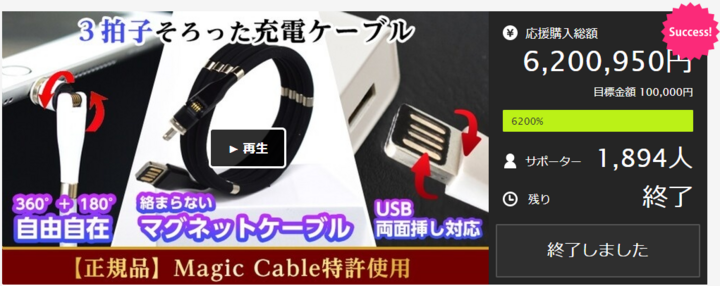 『Magic Cable』 シリーズは累計5,000本のご支援でしたが、これにより累計10,000本へと迫る評価をいただくことになります。