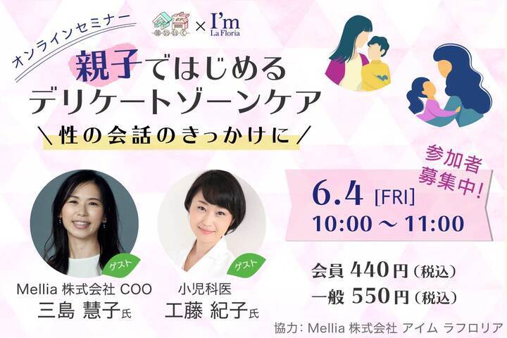 性教育メディア命育®(運営:Siblings合同会社)は、デリケートゾーンケアブランド「I’m La Floria(アイム ラフロリア)」を運営するMellia株式会社とコラボレーションし、小児科医の工藤紀子氏をゲストに迎え、親子でできるデリケートゾーンケアについてのオンラインセミナーを開催します。このセミナーをきっかけにデリケートゾーンやケアの仕方、親子での会話の仕方等を学び、日常生活で実践するきっかけを提供します。