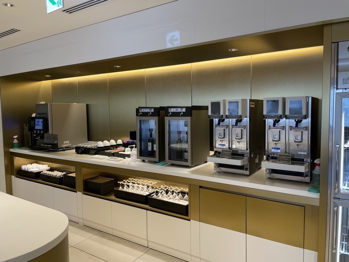 JAL社のコロナ禍における非接触機器の導入強化、安全・安心の取り組みの一環で導入され、サーバーの使用で不特定多数がボトルに触れることがなくなり、品質管理されたワイン・日本酒をお客様自身がボタン1つでセルフサーブいただいています。