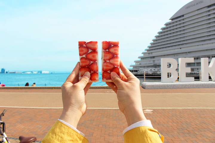 5月はいちごのオープンサンド 神戸市西区の農家、大西さんのいちご「あきひめ」を使用。