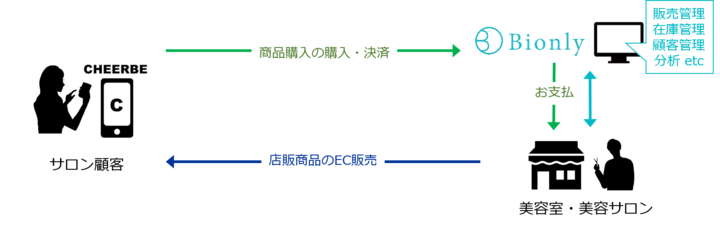 本機能は、Bionlyが美容室・美容サロンと顧客の間に入り、双方がスムーズに販売手続きを行えるシステムです。