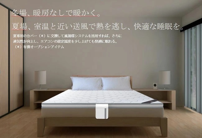 日本も含め世界中に数十万台を輸出している換気扇メーカーの中国企業が、換気扇のノウハウを生かし風を送り自動的に温度管理をするマットレスを開発し、様々な商品を世に出してきたバイオシステム株式会社が販売を手掛けることになりました。