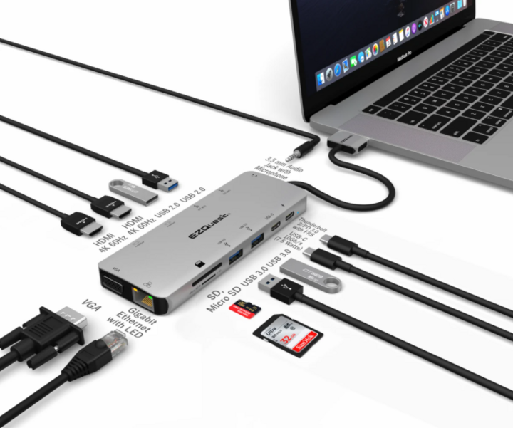 10種類のポートは使用されるほぼすべてのポートを実装しており限定した数種類のUSB-Cハブのように接続を考えることはありません。