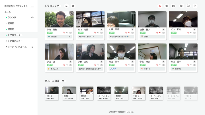 リモートワークの課題・問題点を解消し、個人とチームの一体感を高めるバーチャルオフィスツール LIVEWORK(ライブワーク)。