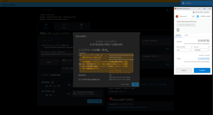 『Eartha dApp』は、従来のB2B決済サービスを補完するDefi領域において、Web3.0に分類される分散型アプリケーションであり、ブラウザ上でアカウント登録不要でウォレット、Eartha dApp、Eartha Token(EAR)の3つを組み合わせることで、今までにない法定通貨ベースで使いやすい仮想通貨決済を実現しています。仮想通貨による決済方法を導入する際にシステム開発等の必要がなく、コストゼロですぐに仮想通貨による決済方法を追加することができます。また、決済やエスクローは、ブロックチェーン上のスマートコントラクト(プログラム)により自立的・自動的に行われるため、従来の金融機関やクレジットカード会社、その他の仲介業者は経由せず、国内と海外の通貨の違い、手間、コスト、人的ミス、送金に必要な時間等が大幅に削減されます。スマートコントラクトは人為的に変更されることがないため、決済やエスクローの際に一度預けられた資金はスマートコントラクト上で安全に保全されます。従来の信託による口座の分別管理等による資金保全方法以上の安全性を低コストで確保できます。