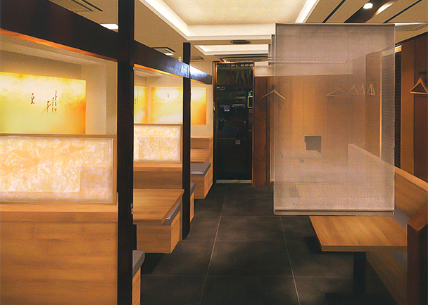 ▶2・3階の掘りごたつ式座席を1階同様のテーブル席へ変更したことに伴い、4階(個室席)以外全フロアのお客様用下足箱を一斉撤去。お履物に触れ着脱する煩わしさを解消すると共に、お客様のご入店・ご退店時が重なった際の下足箱エリアの「密」防止も実現しました。
