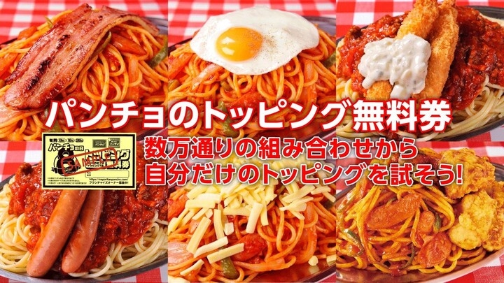 9/16(木)から9/30(木)までの期間中にお食事くださった方へ、もれなく「トッピング無料券」をプレゼント。次回ご来店時にお使いいだける「トッピング無料券」は、最大240円のトッピングまで無料となります。美味しいナポリタン・ミートソースに、お好みのトッピングでカスタマイズする『パンチョ』ならではの楽しさを、お得なチケットでご体験ください。