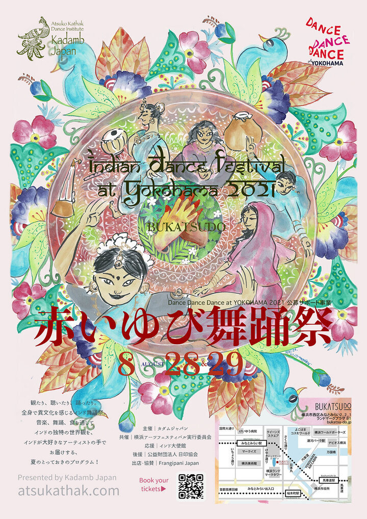 カダムジャパン主宰「赤いゆび舞踊祭」のオンライン配信が9月23日より30日まで開催されます。横浜アーツプログラム実行委員会が共催となり、Dance Dance Dance at Yokohama 2021の公募サポート事業に採択され開催されるものです。8月28日にBUKATSUDOにて開催された舞踊祭の様子を中心に、開港記念会館で撮影された映像や台湾からのゲストを交えて、テーマである<観たり、聞いたり、踊ったり。全身で異文化を感じるインド舞踊祭。インド舞踊独特の世界観を、インドが大好きなアーティストがお届けするプログラム!>をおうちで安全に楽しんで頂けるプログラムです。