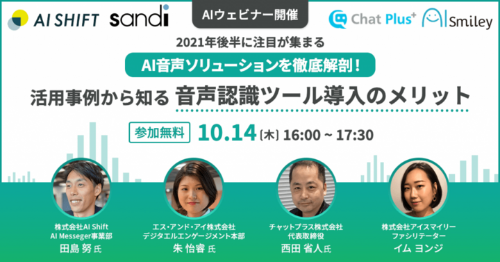 AIポータルメディア「AIsmiley」、2021年後半に注目が集まるAI音声ソリューションを徹底解剖するウェビナーを開催!2021年10月14日(木)16時~