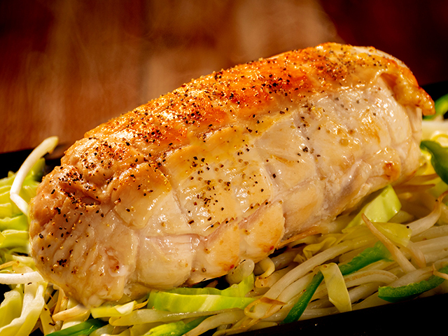 低温調理でしっとりと仕上げたログチキンステーキ。鶏肉のたんぱく質は疲労回復効果と抗酸化作用がある栄養素「イミダゾールペプチド」を含み、精神的な疲労や認知症予防も期待できます。ソースは3種の中から選べます。