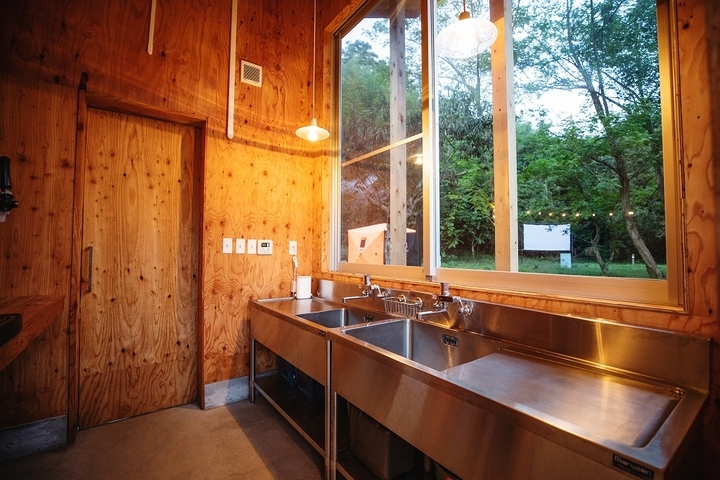 北欧風な山小屋の中には、温水設備の整った炊事場をはじめ、清潔な男女別シャワートイレ、温水シャワー、無料WIFI、パーティー用の生ビールサーバーなどをご用意しています。