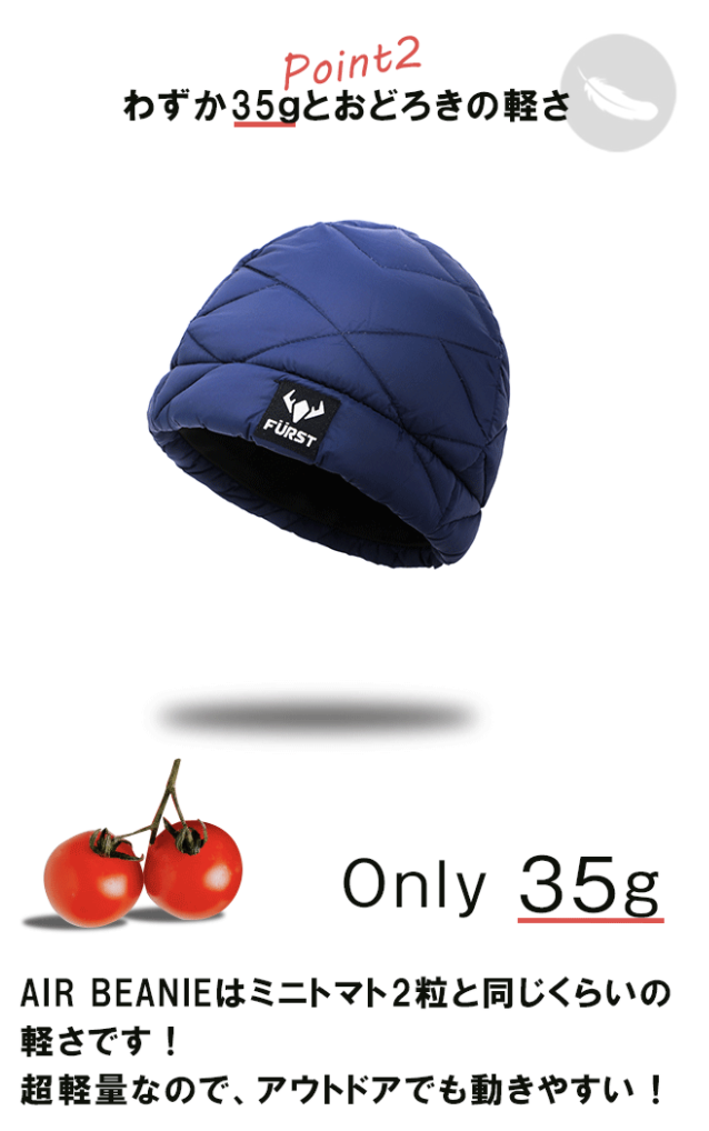 【冬のキャンプやアウトドアに!】グースダウンの温かさとわずか35グラムの軽さ!"暖かさ×コンパクト"を実現したビーニー「AIR BEANIE」が日本上陸!