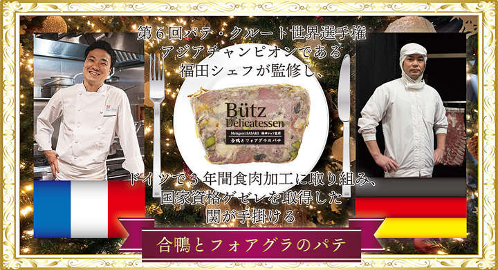 ブッツデリカテッセン(タカラ食品工業株式会社・本社:東京都大田区、代表取締役社長:佐々木 康成)は、ボジョレー~クリスマス向けの期間・数量限定スペシャリテとして、『合鴨とフォアグラのパテ』を発売いたしました。