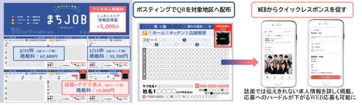 ポスティングでご家庭に直接届く『地域みっちゃく生活情報誌®』の「まちJOB」と、詳細な情報が確認でき便利で簡単なWeb求人応募のできる「フリモ」機能のコラボレーションは、最も効果的な採用活動支援として期待されます。