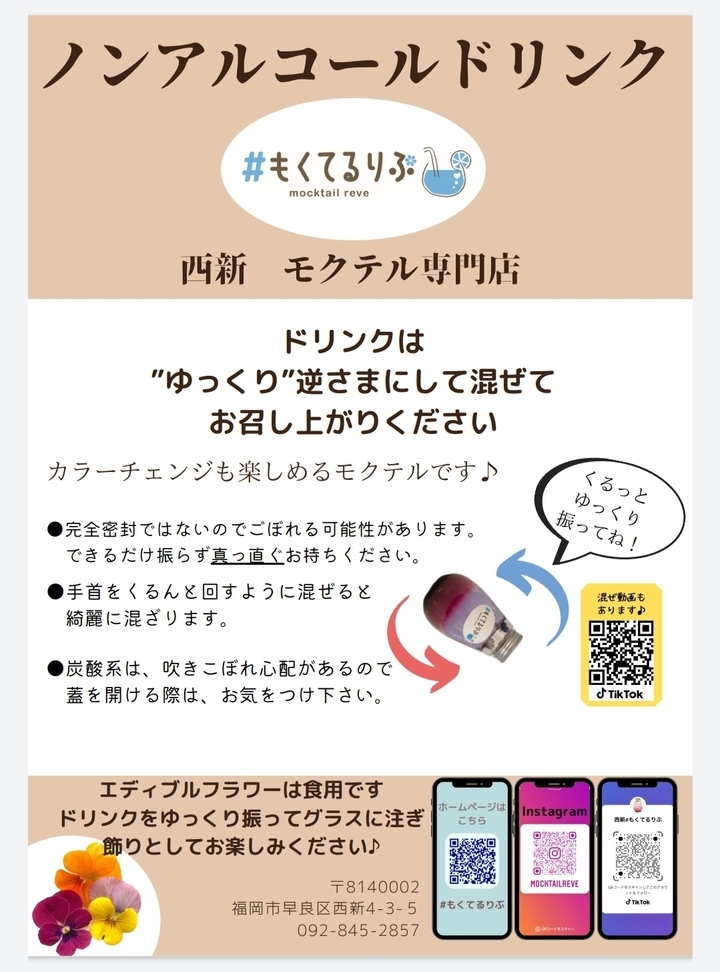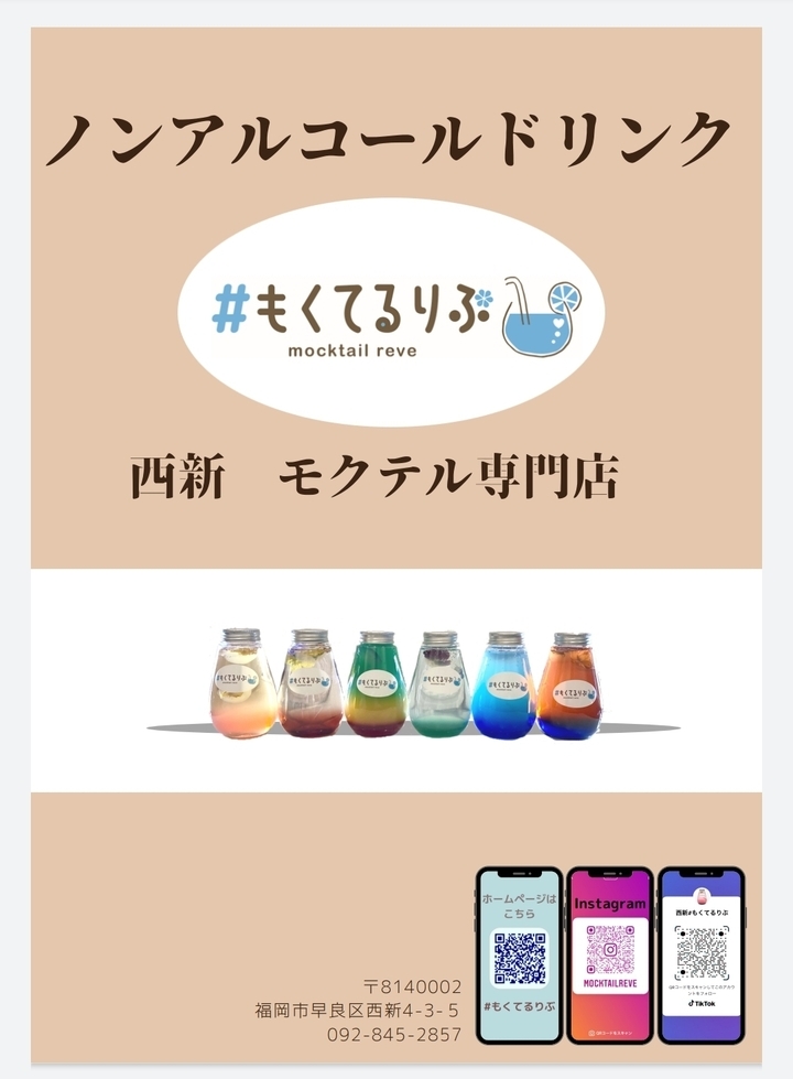 英国生まれのノンアルコールカクテル「モクテル」をテイクアウトで販売する「#もくてるりぶ(mocktail reve)」(所在地:福岡県福岡市早良区西新)は、2021年12月15日(水)~25日(土)、福岡市西区にあるショッピングセンター「木の葉モール橋本」で開催されるイベント「おやつtoまるしぇ」に出店いたします。