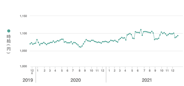 2021年12月度 アルバイト・パート平均時給・求人数レポート