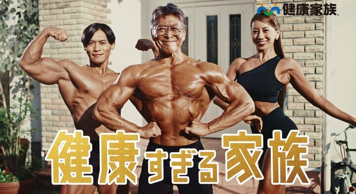 CMには、3人の著名なボディビルダーが出演。ビキニフィットネス界の女王・安井友梨さん、イケメンすぎるボディビルダーとして注目を集める嶋田慶太さん、日本マスターズボディビル選手権で優勝経験のある還暦のボディビルダー林勇宇さんが、“健康すぎる家族”として登場。日常の中で惜しげもなく披露される肉体美が印象的なCMとなっています。