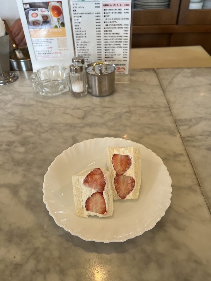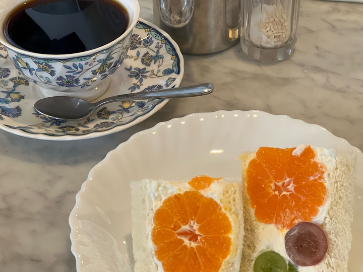老舗であるがゆえに若者のお客様があまりいなかったことに目をつけ、若者をターゲットにするため、時にサンドイッチを食べて回り、今もご自身で作り方を研究しているフルーツサンド。特に、台湾の杏仁茶をクリームに混ぜた杏仁サンドは、甘さ控えめで非常に美味しいです。コーヒーと一緒にいただくことをオススメいたします!