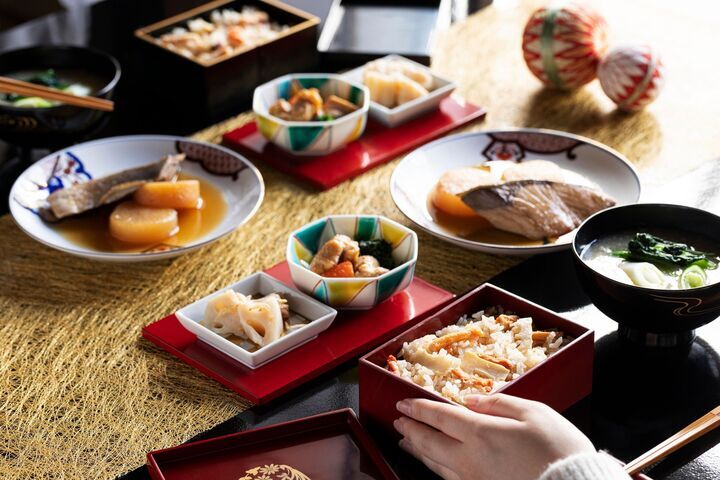 メニューは主食、汁物、主菜、副菜を組み合わせた5‐6品からなる一汁三菜以上の和食献立となっており、まるで旅館で提供されるような御膳をお楽しみいただけます。