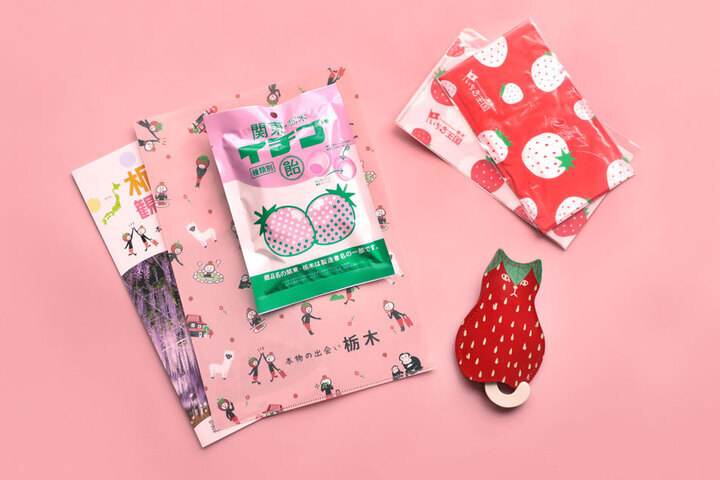 「関東・栃木イチゴ飴」「いちごマスク」「いちごマスクケース」「いちごクリアファイル」「栃木県観光MAP」