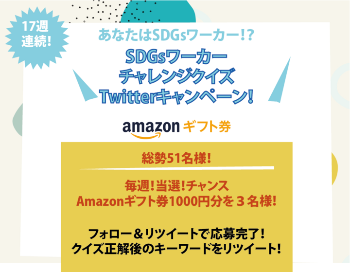 クイズに挑戦してSDGsワーカーに!? 17週連続!毎週当選チャンスのTwitterキャンペーン開催!