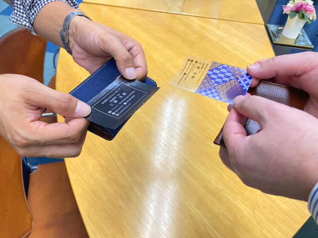 インパクトある名刺は、商談時のアイスブレイクに役立ち、名刺交換後のコミュニケーションも円滑に進みます。せっかくのビジネスチャンスを最大限に活かしてほしい という想いから、当社の擬似エンボス印刷技術とインパクトのある透明素材を組み合わせた「クリア名刺」を開発しました。