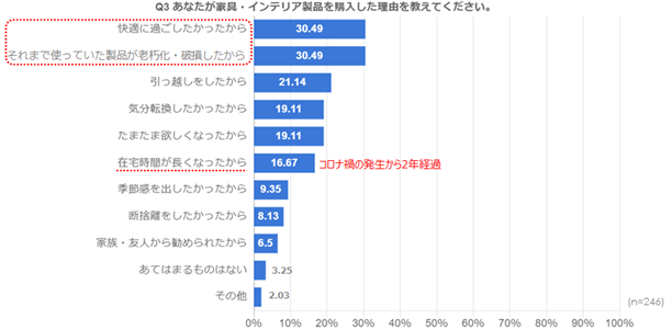 コロナ禍の発生から2年が経ちましたが、「在宅期間が長くなったから」は16.7%と決して低くはありません。