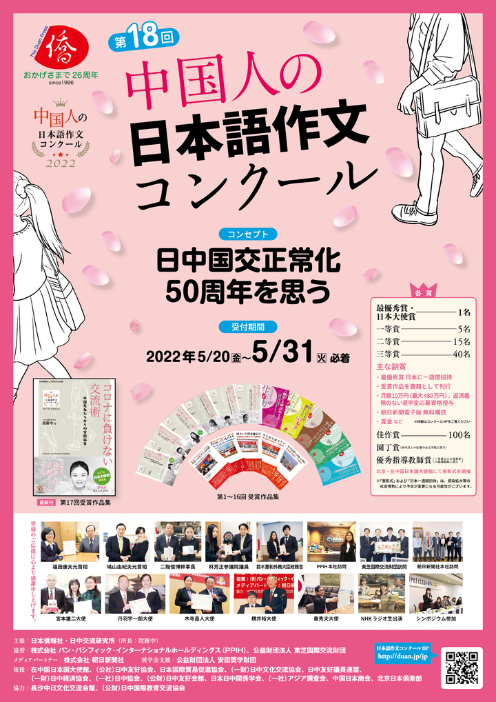 【日本僑報社発】中国での新型コロナウイルスの感染拡大により、日本僑報社・日中交流研究所はこのほど、2022年1月に発表した第18回「中国人の日本語作文コンクール」募集要項のうち、募集テーマの追加を急遽決定しました。