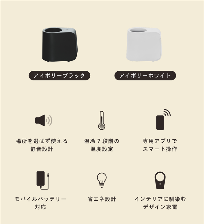 ※7段階の温度設定は、アプリからのみ可能です。本体からは温冷の2段階の設定ができます。