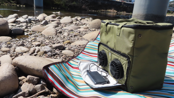 冷風機などを持って出かけることがスタンダードになりつつある中で、保冷バッグ自体が冷風機になることで、荷物が格段に減って楽ちん