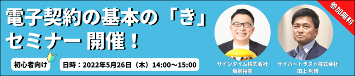 電子契約サービス「SignTime」を提供するサインタイム株式会社が初めてのウェビナーを長期署名やタイムスタンプを提供するサイバートラスト株式会社と共催します。