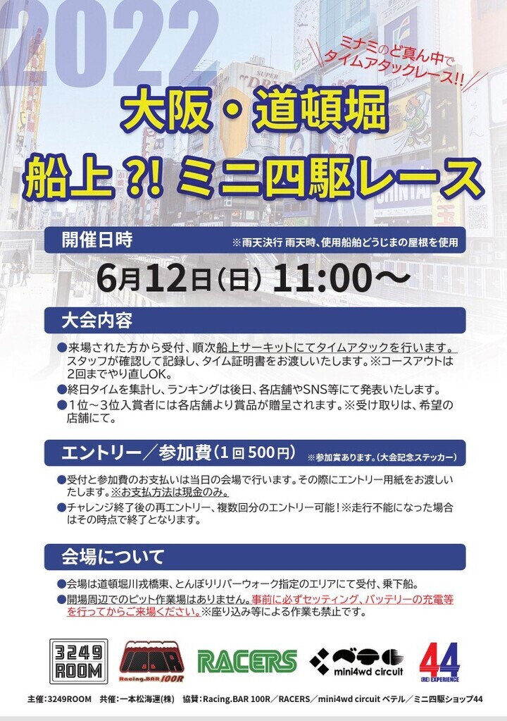 『大阪・道頓堀 船上!ミニ四駆レース』2022.6.12(日)道頓堀で初開催!