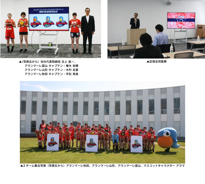 プレステージ・インターナショナル アランマーレは、アランマーレ秋田(バスケットボール)、アランマーレ山形(バレーボール)、アランマーレ富山(ハンドボール)の、3チーム合同の事業方針発表記者会見を6月10日(金)に実施したことをお知らせいたします。
